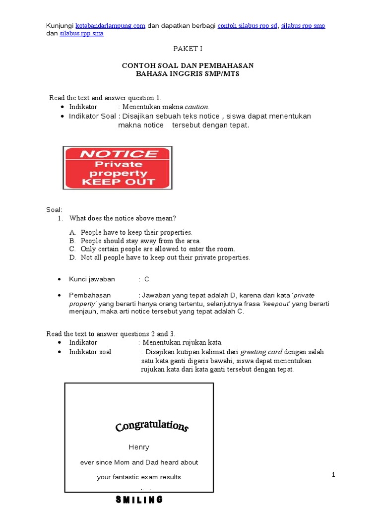 Contoh Soal Un Bahasa Inggris Smp Paket 1