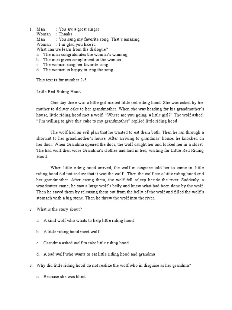 Soal Uas Bing Little Red Riding Hood Leisure