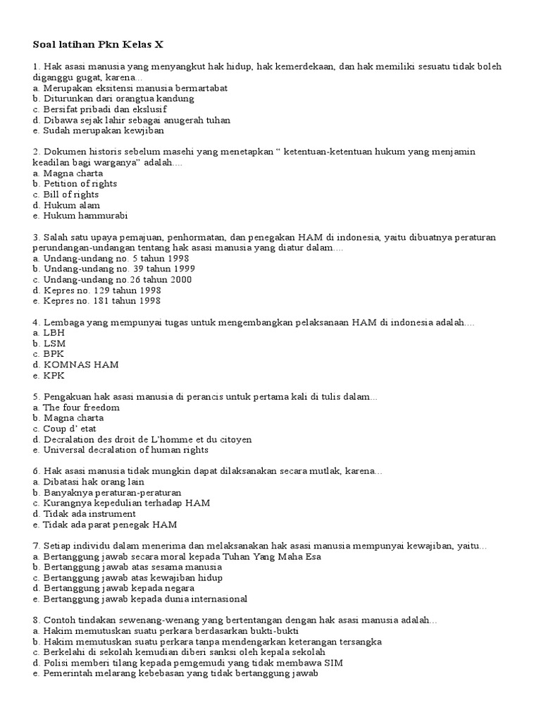 Soal Dan Pembahasan Pkn Kelas 10 Hak Asasi Manusia