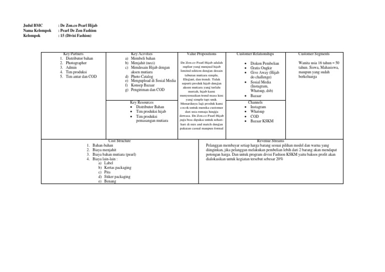Bisnis hijab ini mulai dibangun sejak tahun 2005. Salah satu alternatif yang bisa Anda coba dan dirasa cukup berhasil yaitu BMC Business Model Canvas. Rencana Bisnis Usaha Penjualan Hijab dan Fashion Muslimah disusun oleh.