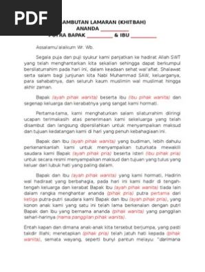 Lamaran punika saenipun kalampahan kanthi lesan. Sambutan Menerima Lamaran untuk Pihak Wanita Penutup Mudah-mudahan Bapak dan Ibu nama wanita berkenan untuk meridhoi niat anak kami dengan menerima lamaran iniHanya inilah yang dapat kami sampaikan kepada Bapak dan Ibu dan tak lupa kami sekeluarga besar dari nama bapakibu pihak laki-laki mohon maaf apabila dalam menyampaikan maksud dan tujuan. Contoh Teks Naskah Pidato Kata Sambutan Pihak Wanita Acara Khitbah Lamaran 2 Yang Terhormat Bpk.