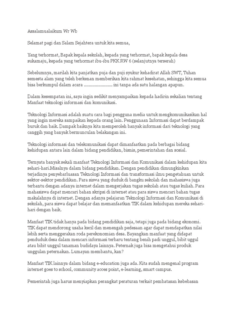 Dengan demikian bisnis dan komunikasi berjalan. Contoh Pidato Tentang Teknologi Informasi dan Komunikasi dalam bidang pendidikan.