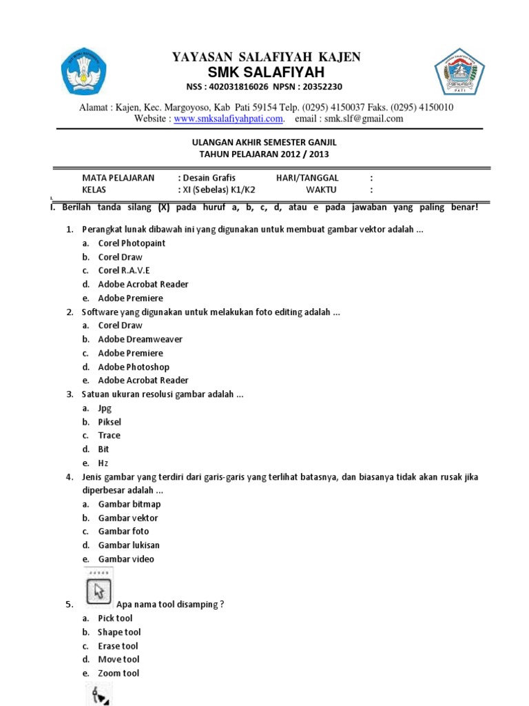 View Essay - SOAL PTS Desain Grafis Percetakan Kelas XI MMdocx from SMKN2 101 at SMKN 2 Probolinggo. Sapawarga mempunyai banyak koleksi gambar seperti soal desain grafis xi soal latihan desain grafis beserta jawabannya dan. Bank Soal Kelas 11 Desain Grafis Percetakan Haloo semuanya.